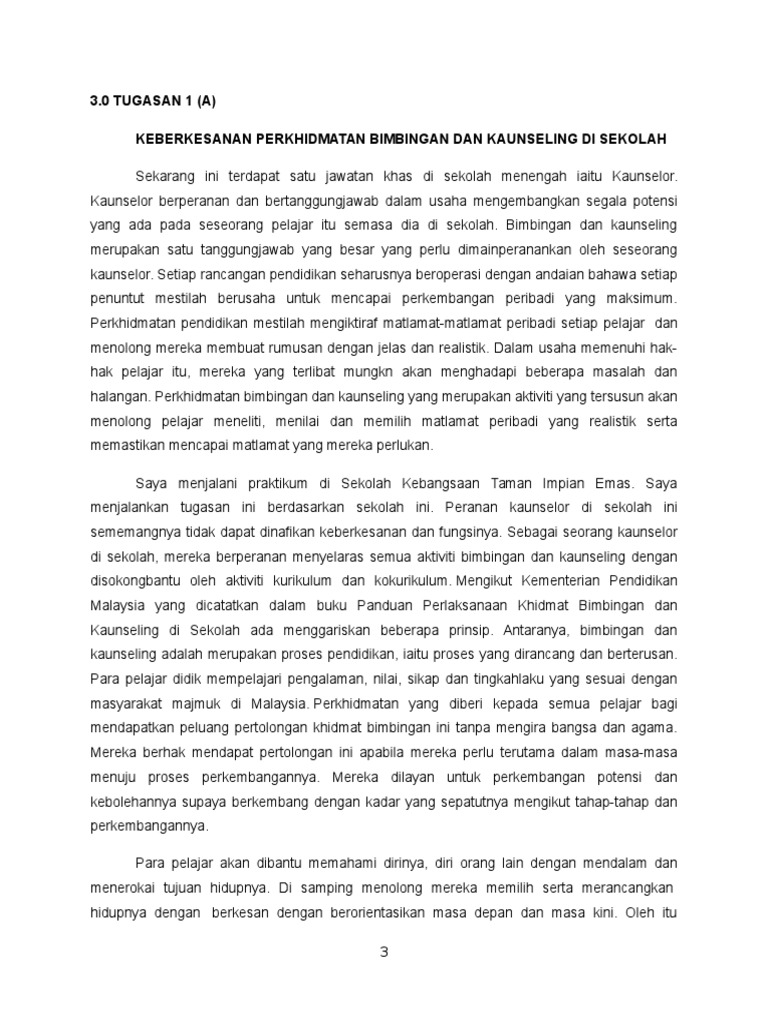 3 0 Tugasan 1 A Keberkesanan Perkhidmatan Bimbingan Dan Kaunseling Di Sekolah Pdf
